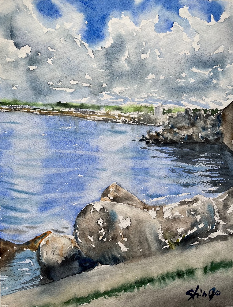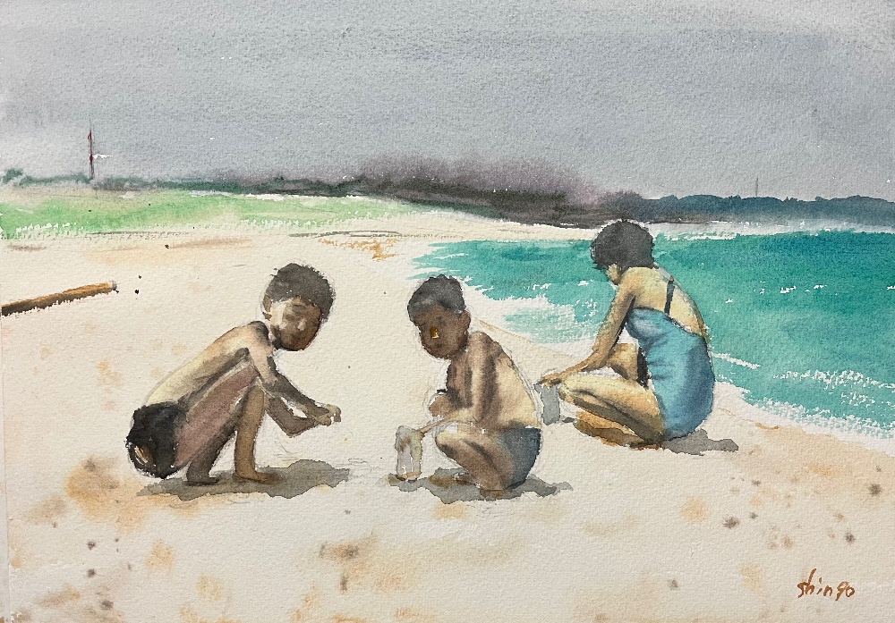 貝殻拾い 33cm×24cm